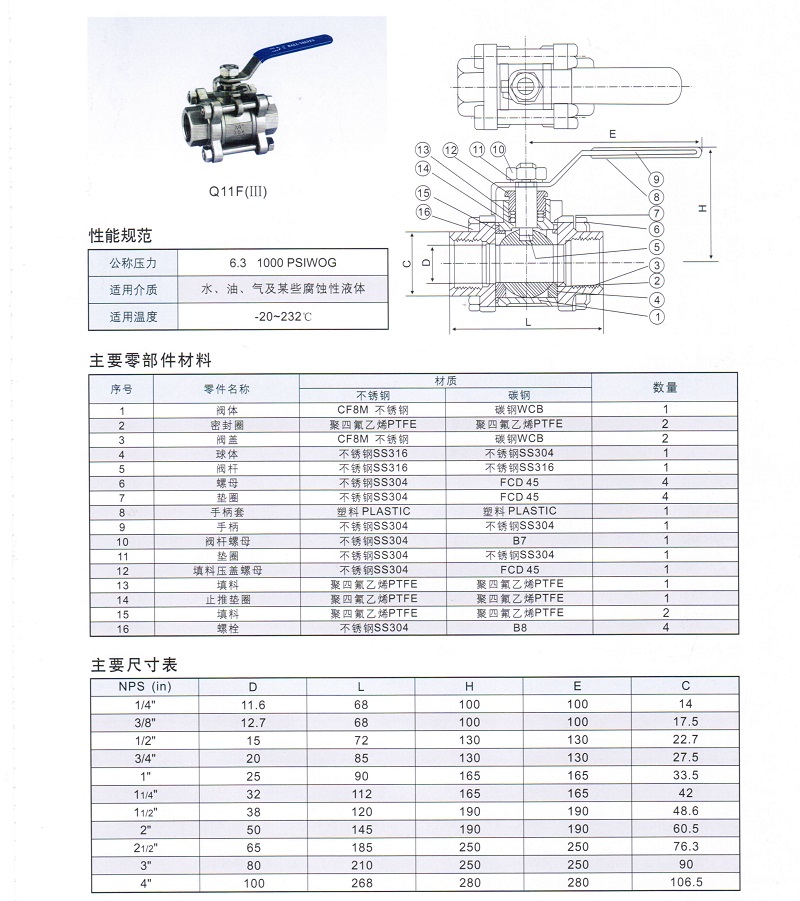 Q11F(III)型 三片球阀
