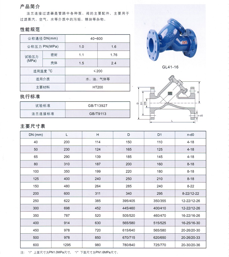 GL41型 法兰Y型过滤器